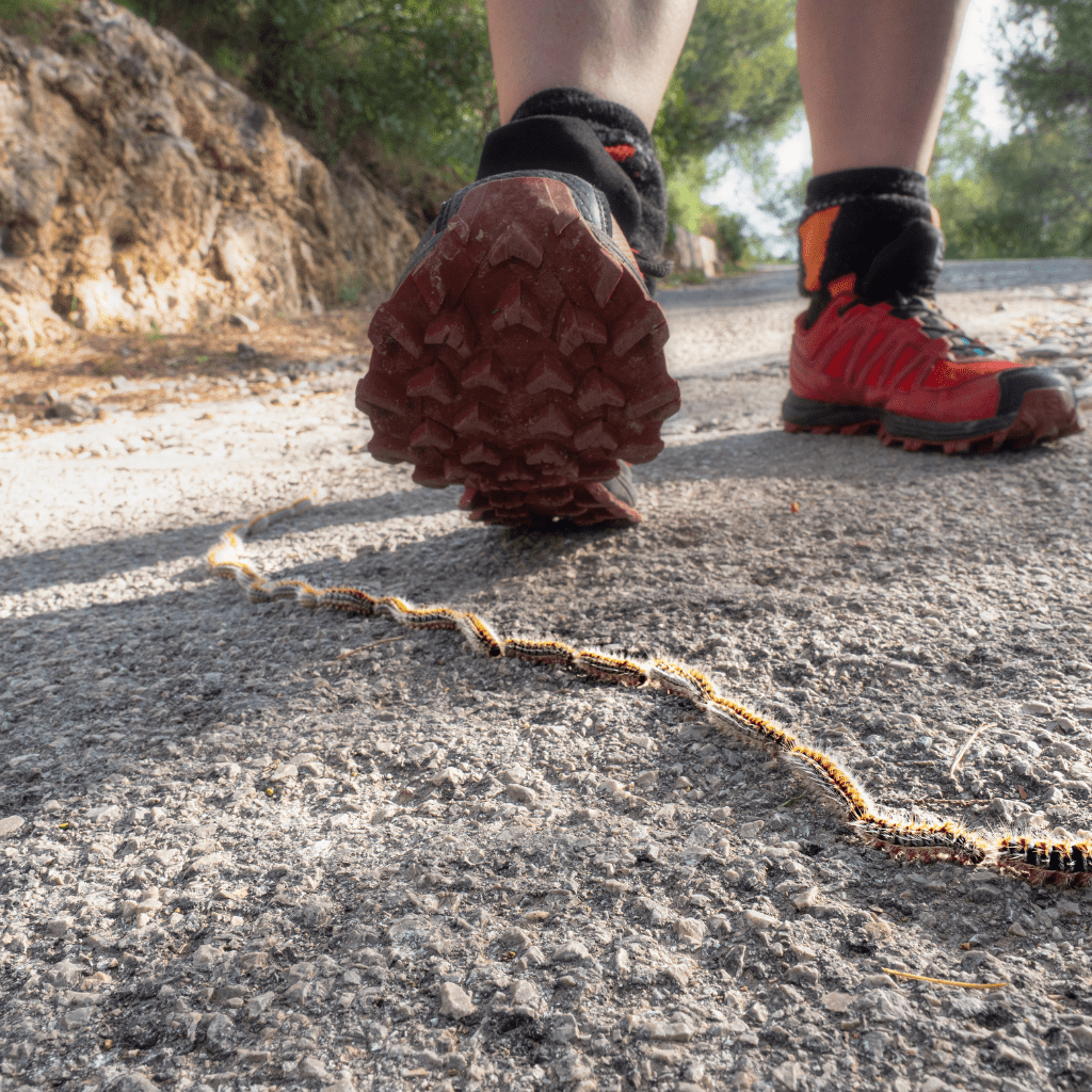 Chenilles en procession au sol